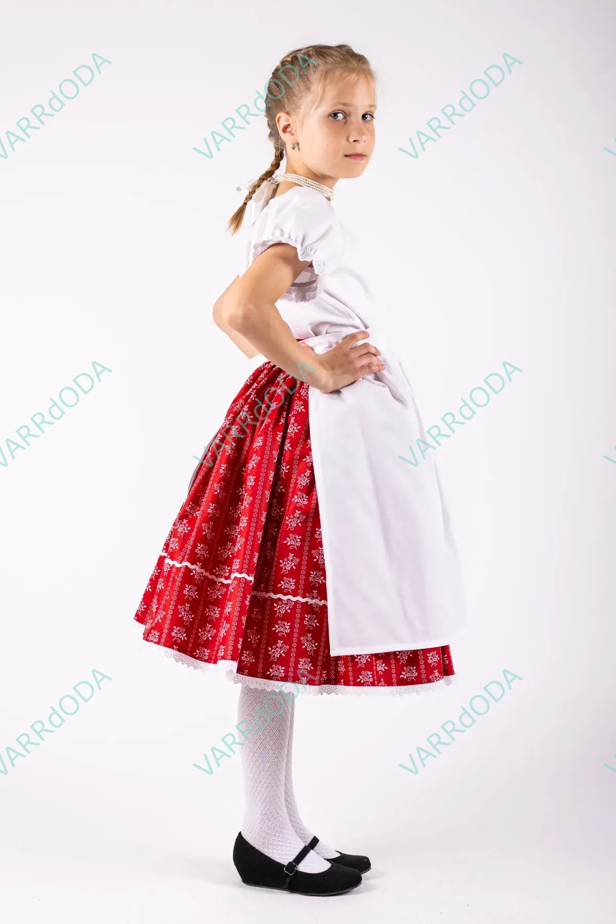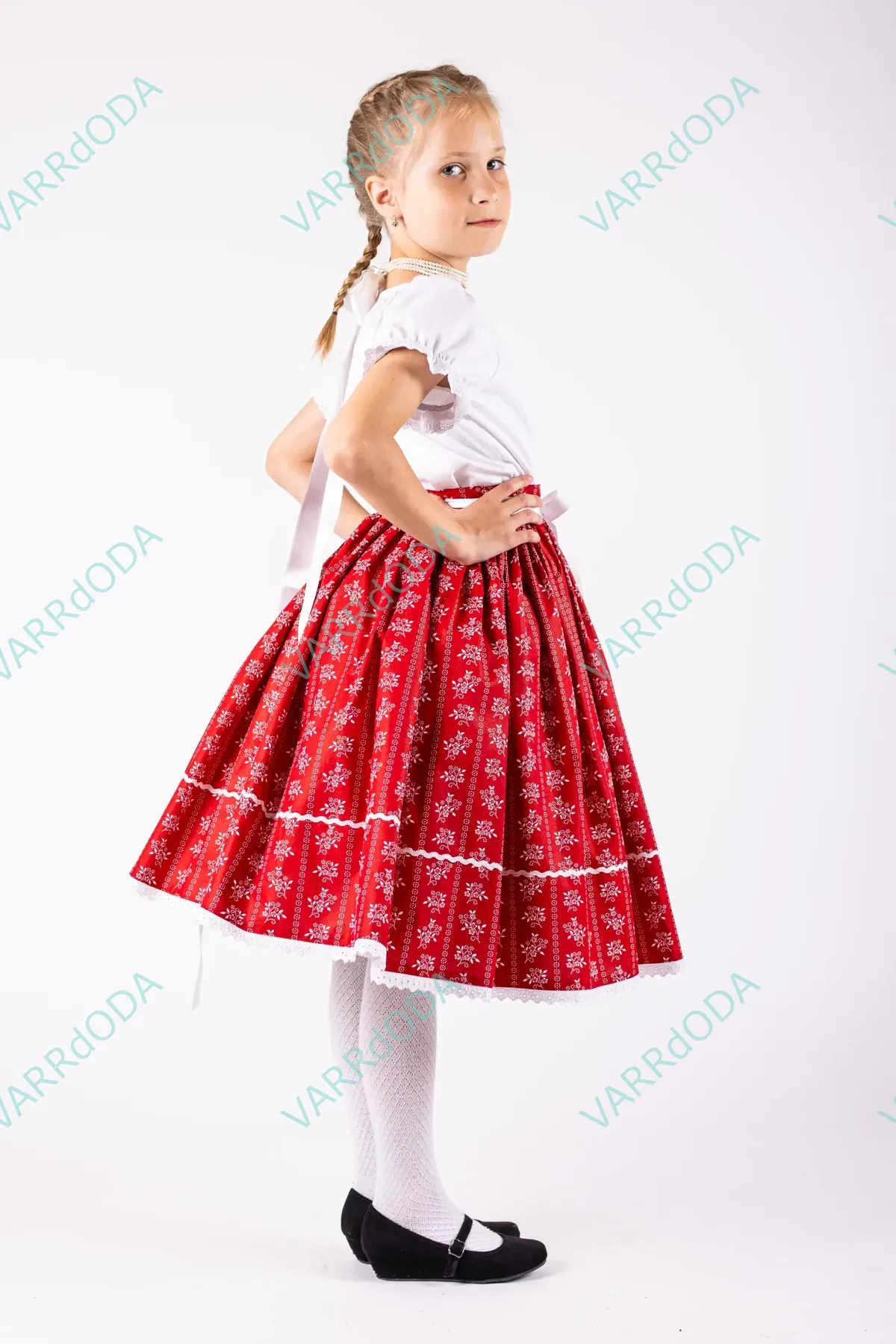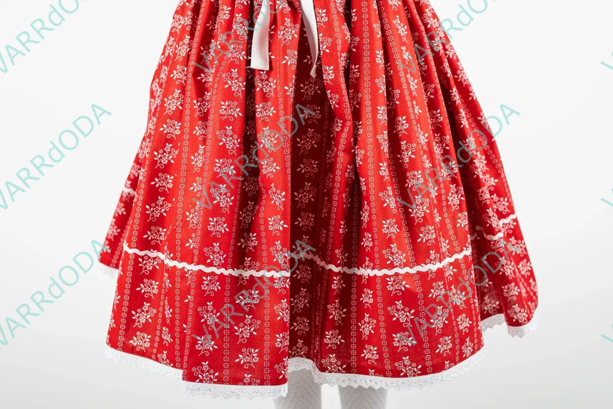 Hagyományőrző piros virágos néptáncos szoknya gyerekeknek, amely tökéletes néptánc próbákhoz és fellépésekhez. Kényelmes, rugalmas derekú, 100%-os pamutvászonból készült.