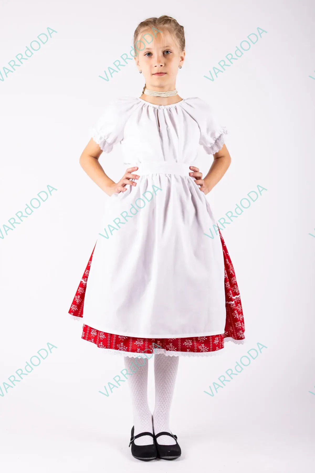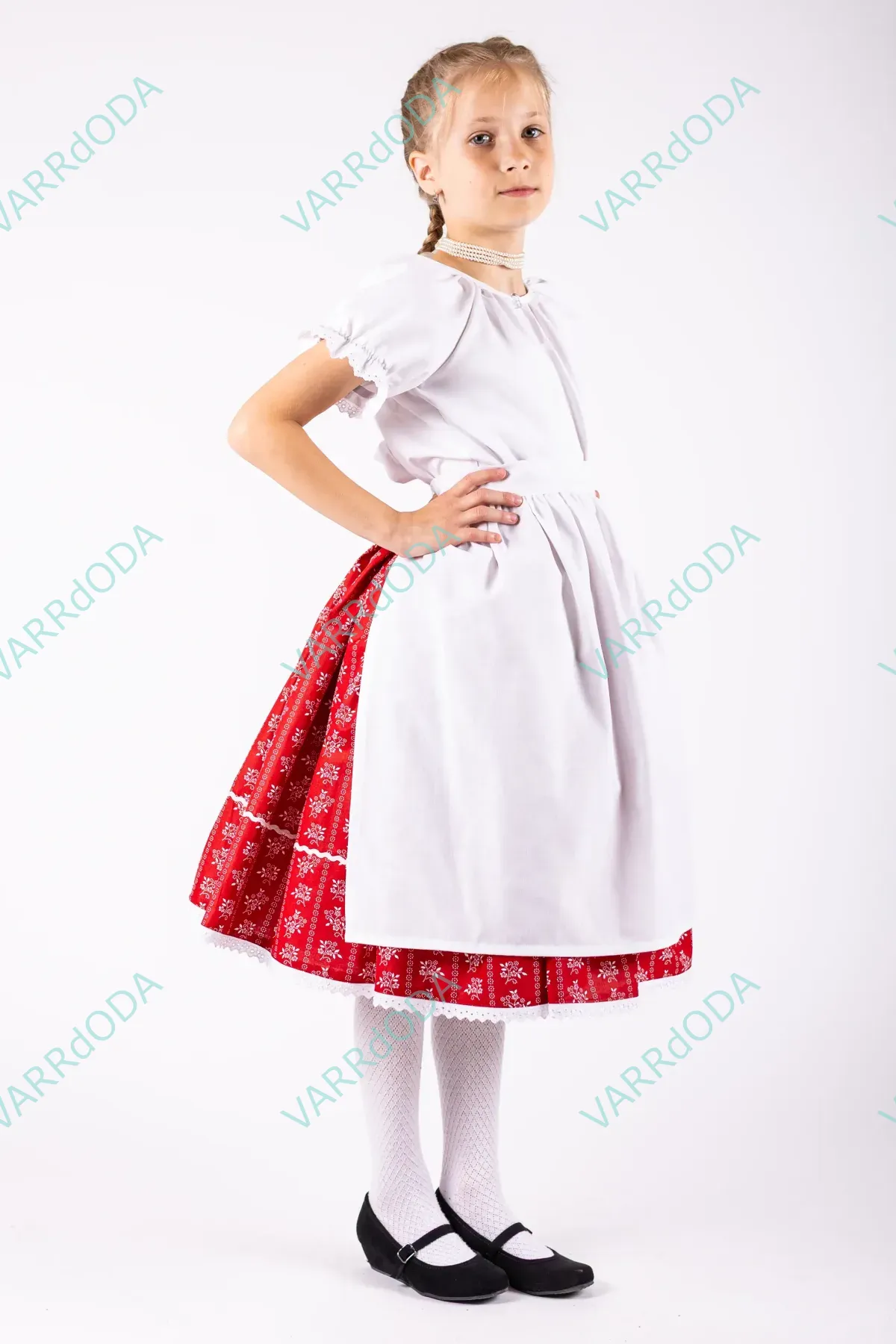 Hagyományőrző fehér matyó néptáncos szoknya gyerekeknek, amely tökéletes néptánc próbákhoz és fellépésekhez. Kényelmes, rugalmas derekú, 100%-os pamutvászonból készült.