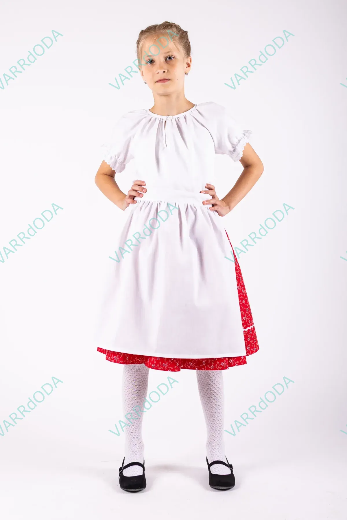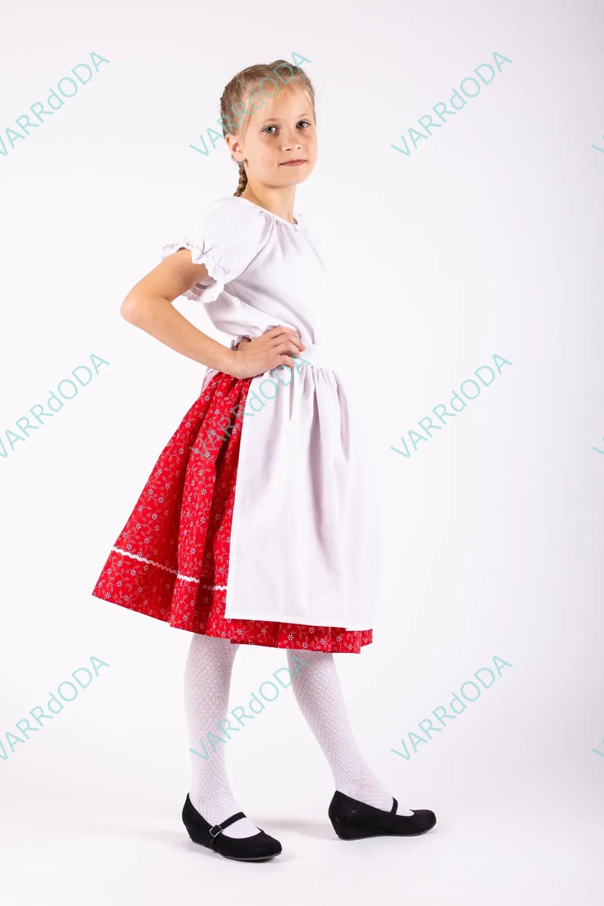 A népi hagyományok őrzése nagyon fontos. Ezek a szoknyák segítenek a gyerekeknek minél jobban ráhangolódni a régi idők táncára a próbákon vagy akár a fellépéseken is. Anyaga100 % pamutvászon. A termék saját méretre kérhető a derékbőség és a szoknyahossz megadásával. A szoknya 280 cm anyagbőséget tartalmaz, mely szép fodrozódást és jó pörgősséget biztosít. Az alját farkasfog díszíti és plusz 9 cm anyagráhagyást tartalmaz az estleges szoknyahosszabbítás miatt. Rugalmas derekát két vékonyabb gumi biztosítja, melyek gumiházba vannak behúzva. Ha már szorít a dereka, akkor a régi gumi eltávolítása után, könnyed mozdulattal új gumit lehet bele húzni és rögzíteni a megfelelő méretben. Használat előtt avasd be hideg ecetes vízbe áztatva a hosszú színtartósság érdekében. A fent látható ár maximum 60 cm-es szoknyahossz elkészítésére vonatkozik.