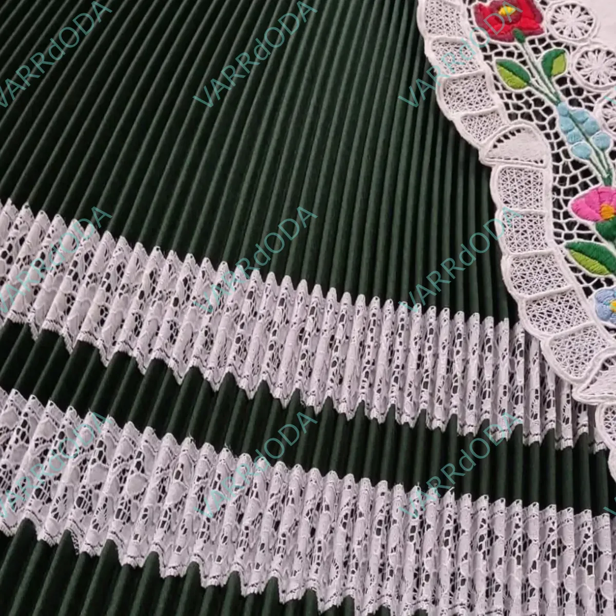 A népi hagyományok ápolása kiemelten fontos, hiszen minden tájegység sajátos viseletet őrzött meg az utókornak. Ezek közé tartozik a sötétzöld pliszírozott szoknya is, amelyet egyedi méretben, különféle színekben és csipkedíszítéssel készítünk el.