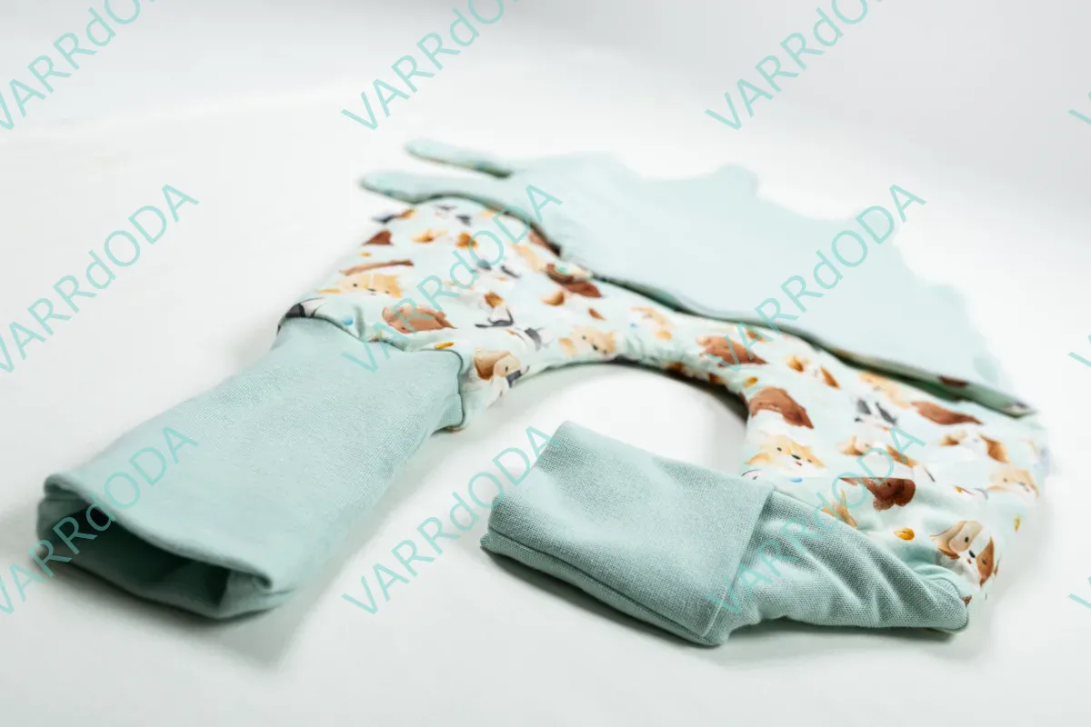 Praktikus cicás ruhatartó zsák óvodásoknak, amely védi a ruhákat, két praktikus zsebbel és kényelmes pamut anyaggal rendelkezik.